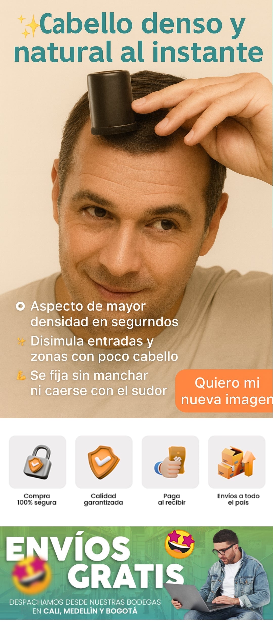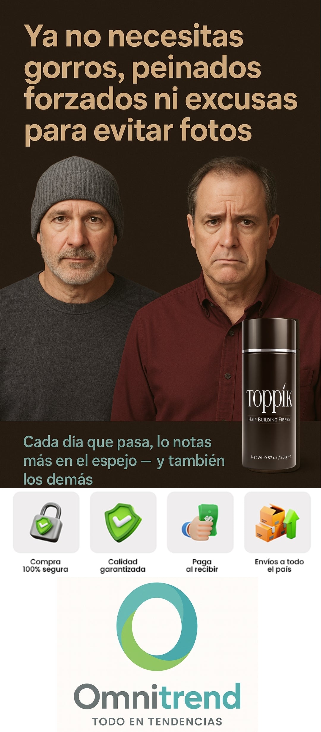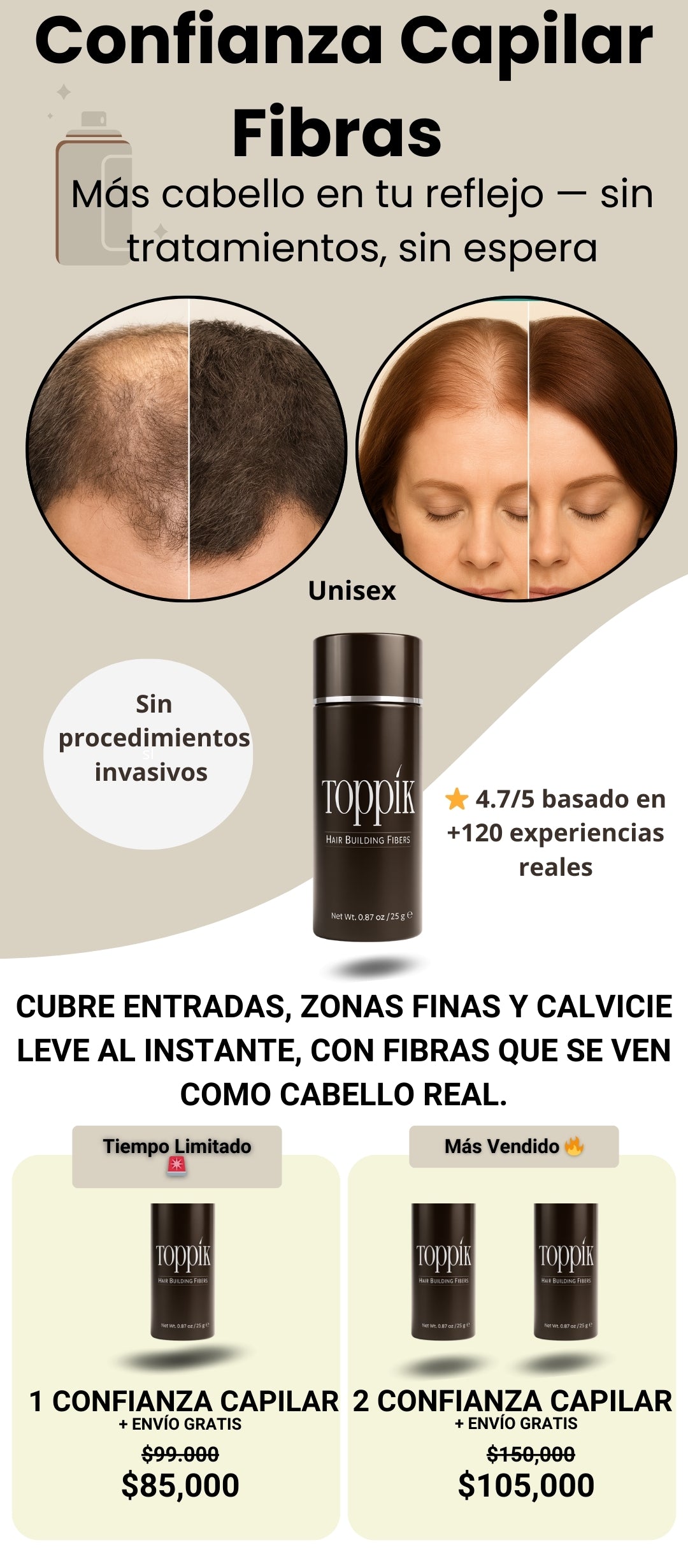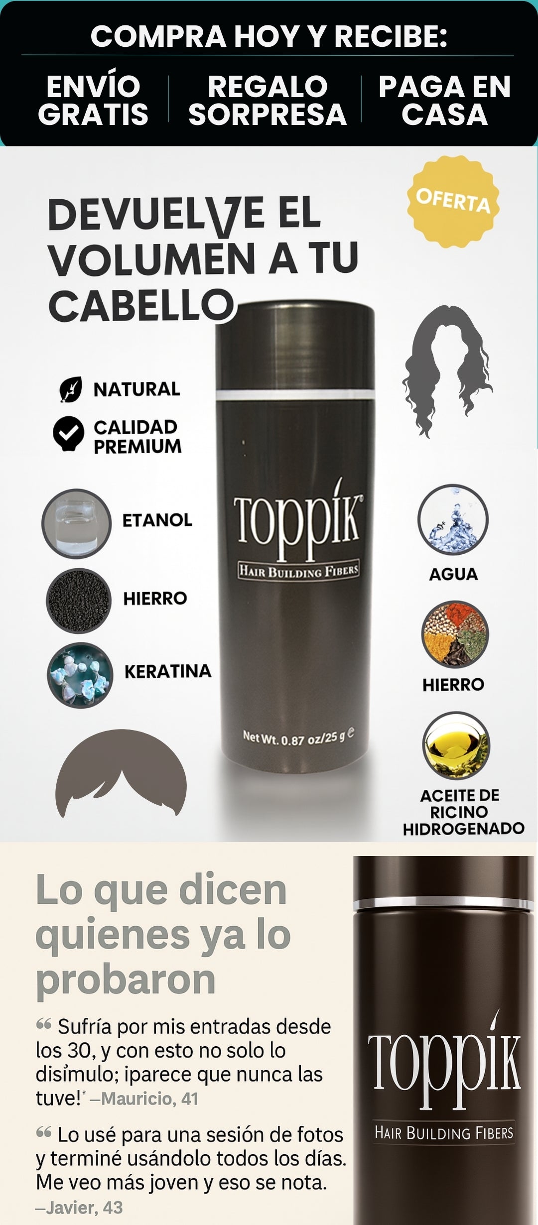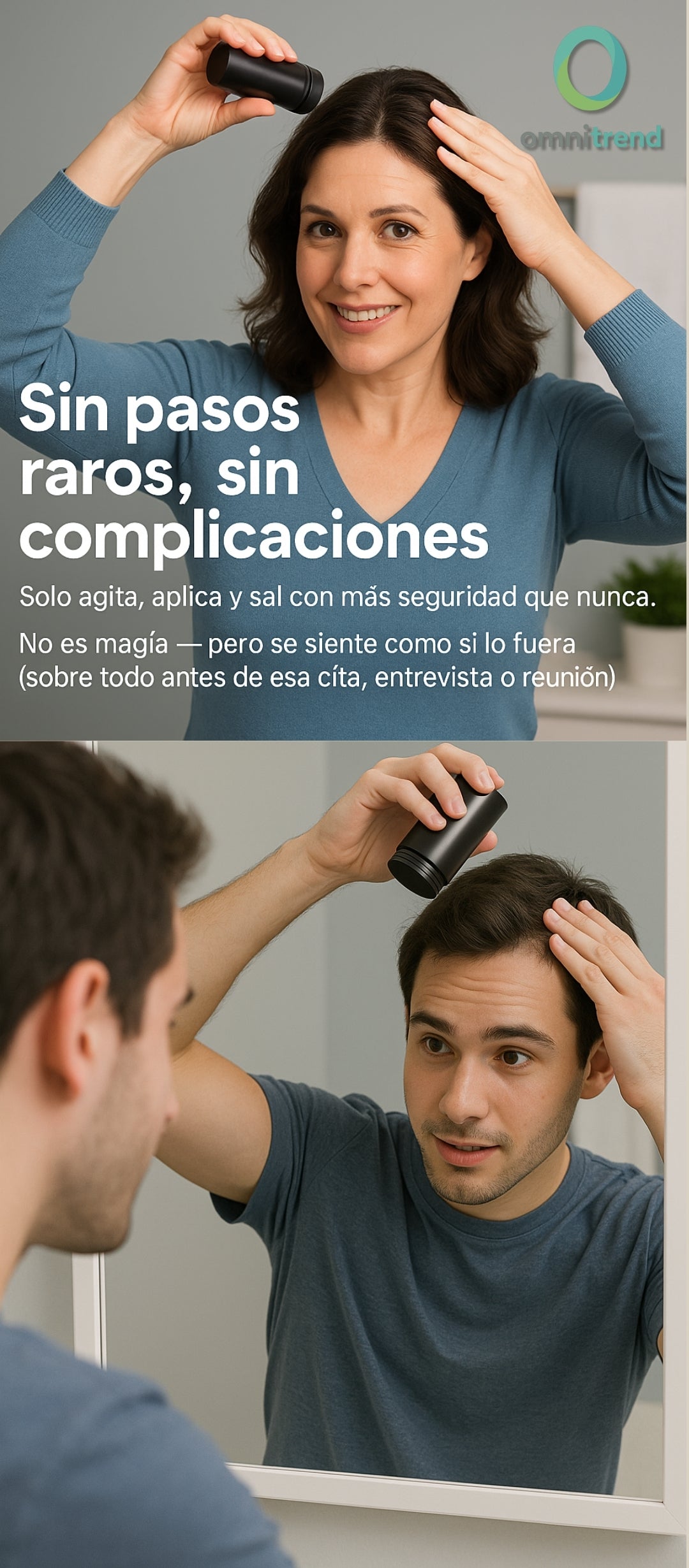 Se ve como cabello real. Las fibras se adhieren al pelo existente y crean un efecto de volumen inmediato sin brillos ni manchas.